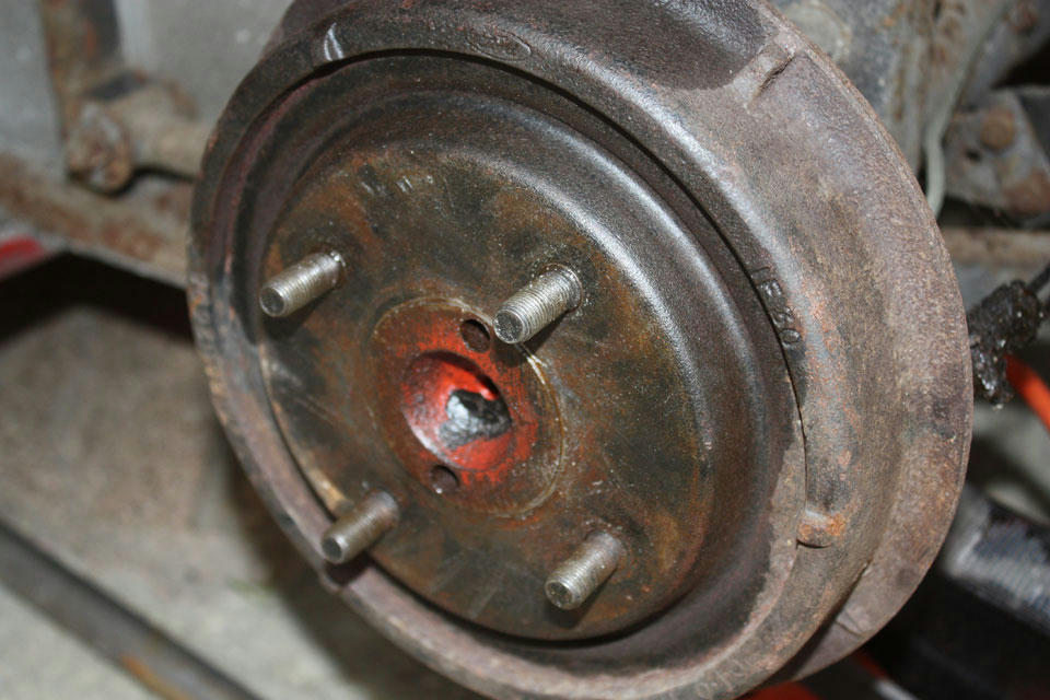 Now that the engine's running well enough to get on the road I thought it wise to turn my attention to the brakes. With the nearside rear wheel off (It's a genuine Wolfrace slot!) I figured that the axle and brakes had once been under the rear of a MKI Escort which was good as I knew how to tackle them.