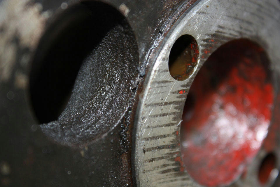 Just visible on the right is the red handle of Alan's diamond file that did a sterling job of removing enough material from the end of the axle to allow the drum to come off. I'll be giving both the drum and the axle a light sanding to clean the surfaces to ease re-fitment.