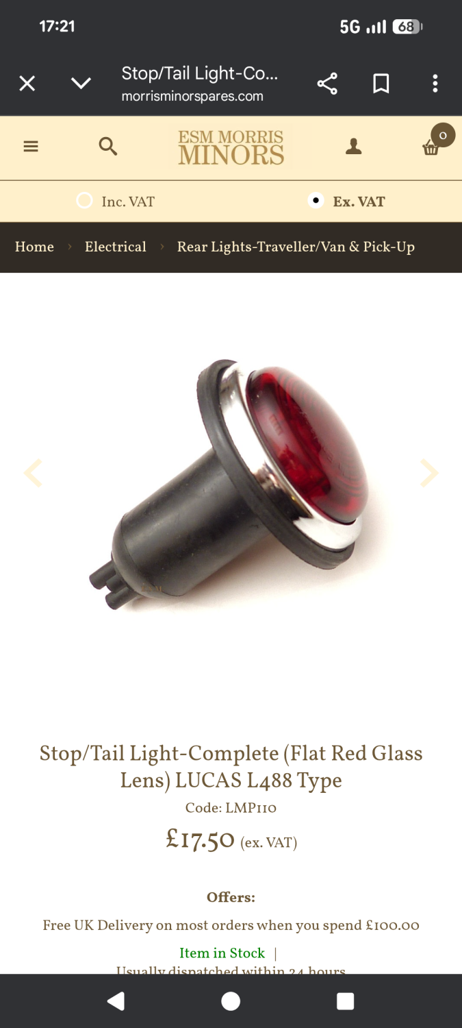 If you are referring to the L488 (73 mm diameter rubber surround), then these are also available in amber. FYI, the whole unit is different because the bulb sits lower in the fitting. The bulb holder is deeper, as is the rubber boot. Stop/Tail Light-Complete (Flat Red Glass Lens) LUCAS L488 Type - Electrical from ESM Morris Minors UK https://share.google/CIzgUQ4uQQrInYWV7 Here's a link to the single (indicator) holders: https://ebay.us/m/rEamm1 And to the boots: https://ebay.us/m/uNSUcN You could instead be refering to the Lucas L539 light that is 83 mm in diameter. I don't have a link for these but a quick internet search may bring them up.