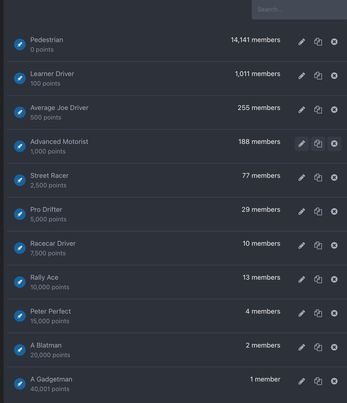 Isn't what you are suggesting @GCP17 already in place here - Leaderboard Perhaps @Captain Colonial can explain how it's currently configured, if you're suggesting the levels need tweaking? His response may assist further discussion on this topic as due to an apparent lack of builds/new car purchases, I do agree the forum isn't as active as it used to be.