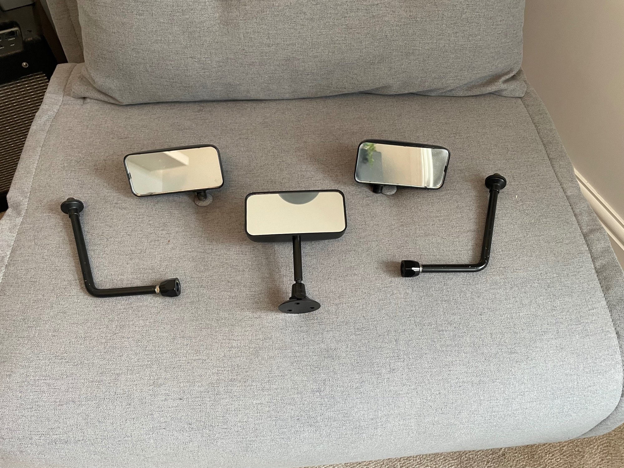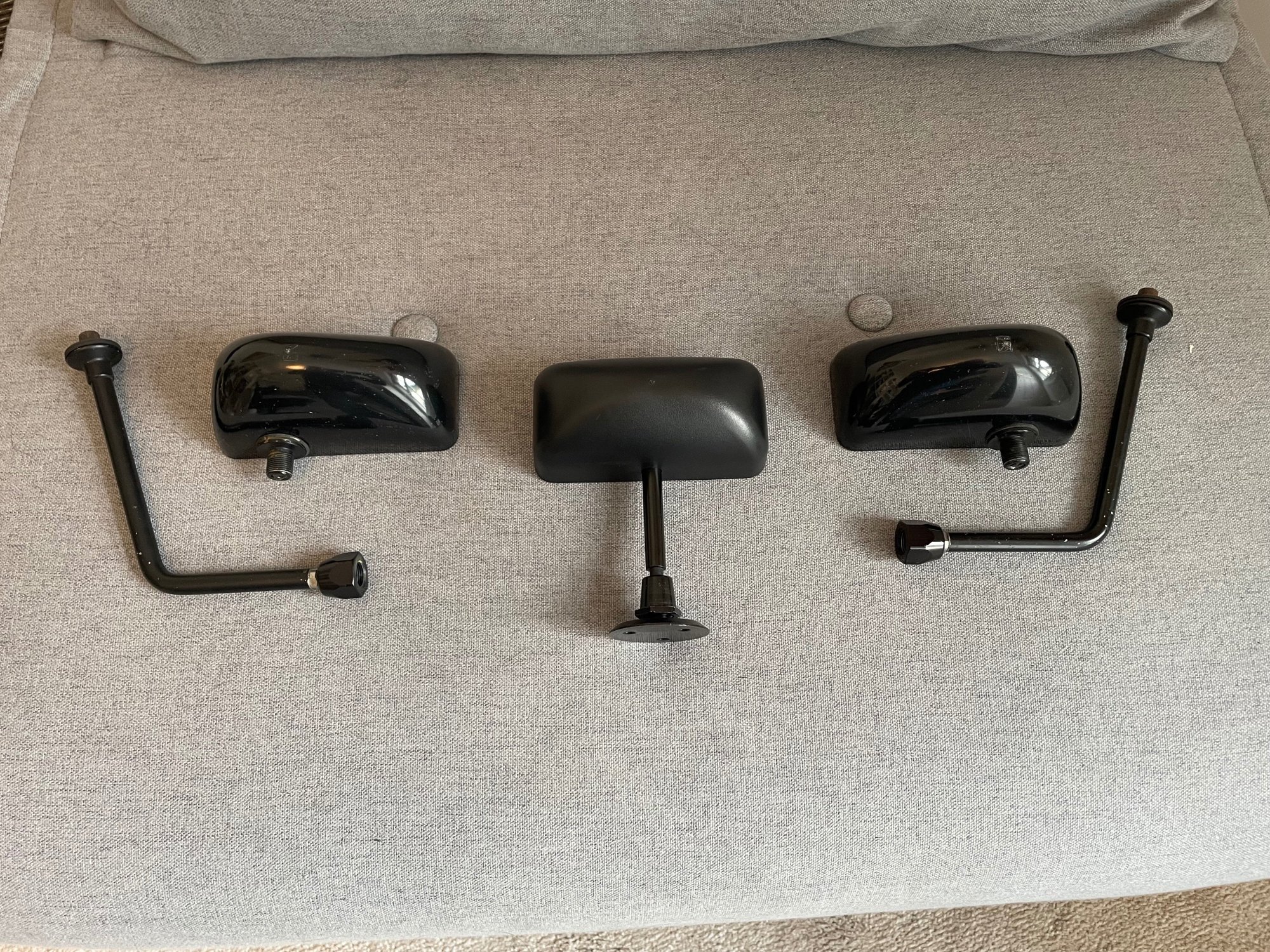 £30 plus postage (open to offers) "Race" (or SPA style) mirror set. Wing mirrors are satin black, centre mirror is slightly more of a matt finish (bought separately). Can supply more pics if you like, just ask. Thanks.