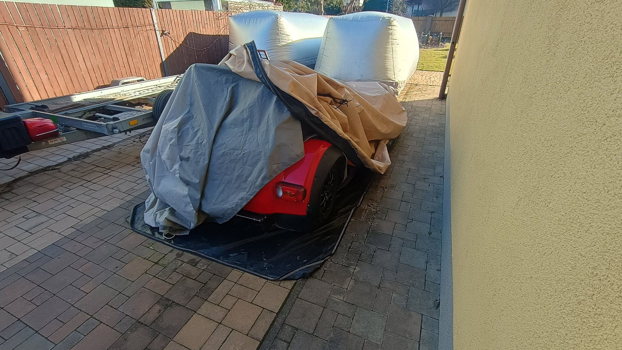 Took my road Westfield out of the Chinese Car Bubble after winter. I did not touch the bubble except for removing snow (the Car Bubble and Carcoon collapse in the same way under fresh snow). Looks like the bubble worked very well. I also added a regular old car cover (creating something like a two-layer cover inside, not connected to the bubble). So – the disc brakes are shiny and clean, completely rust-free, just like in a Carcoon. - Today