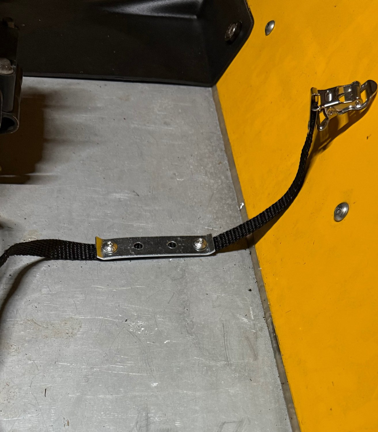 As simple as this. Four M5 rivnuts, two nylon straps, with plates on top to spread the load and prevent them trying to pull through. All ice and secure. -